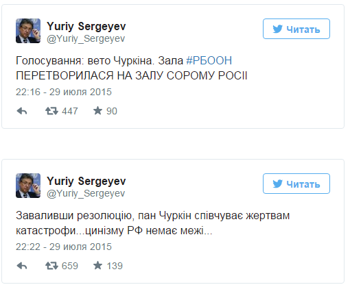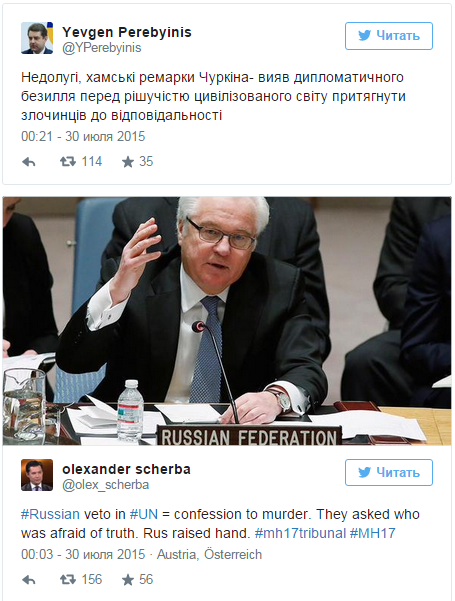 Після того, як Радбез ООН не зміг прийняти резолюцію щодо створення Міжнародного трибуналу по MH17 через російське вето, юзери активно висловили своє обурення.
