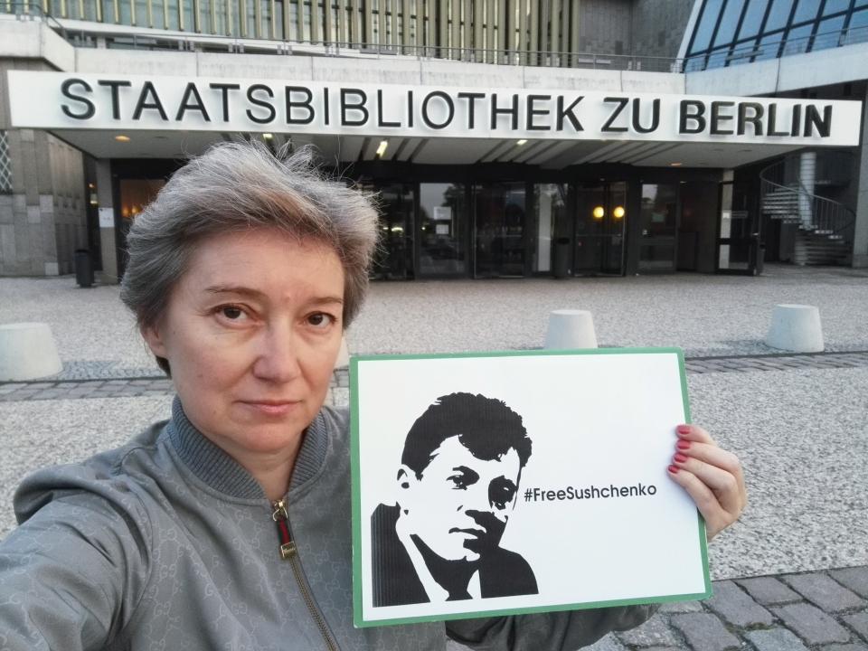 Усі охочі також можуть долучитися до флешмобу – сфотографуватися із мініплакатом #FreeSushchenko та опублікувати зображення у себе на сторінці в соцмережах.