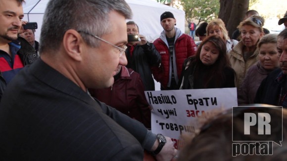 Народний депутат Сергій Міщенко поспілкувався з людьми, котрі пікетували приміщення у Борисполі, де він проводив прийом громадян. Депутат, не задумуючись, віддав годиник жіночці, котра найгучніше кричала, що він коштує надто дорого. Судячи з відео, інші пікетувальники відверто заздрили жінці.