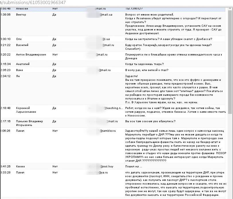 Однак результат виявився вражаючим для СБУ. Олена Гітлянська пише: "СБ України отримала близько трьох тисяч запитань і коментарів. Переважна більшість (понад 98 відсотків) дуже нецензурно висловлюється як про "ДНР/ЛНР", так і про Олександра Захарченка. І ЦЕ ВИКЛЮЧНО ВІДВІДУВАЧІ ПРОРОСІЙСЬКИХ СТОРІНОК. І ЛИШЕ З ХАРКІВСЬКОЇ ОБЛАСТІ!"
