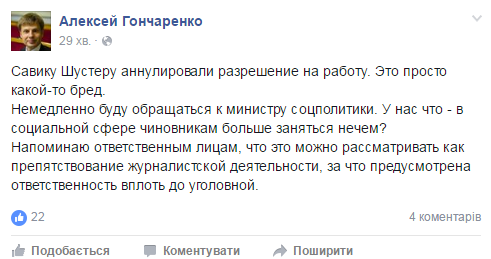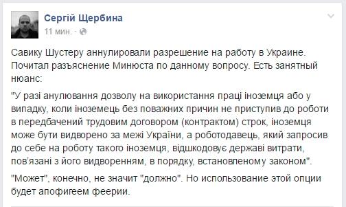 Журналісту Савіку Шустеру, який має громадянство Канади анулювали дозвіл на роботу.