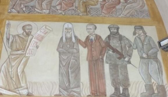 На стінах української греко-католицької церкви у Львові з’явилися фрески з зображенням воїнів АТО з німбами, лікарів і учасників подій на Майдані. На іншій ділянці стіни намальований святий, який попереджає патріарха Кирила, Путіна, проросійського бойовика і алкоголіка у вушанці про Страшний Суд.