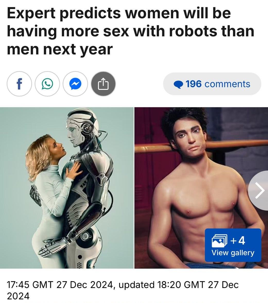 Причому йдеться не про звичайні секс-іграшки, а про людиноподібних секс-ботів, які перевершать у секс-мистецтві чоловіків.