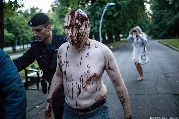 У Москві затримали учасника "маршу ватників" у масці "закривавленого" Путіна