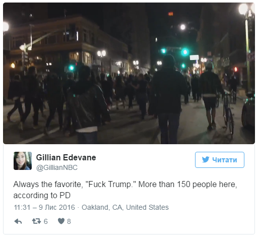 В Окленді, штат Каліфорнія, американці влаштували акції протесту проти Дональда Трампа, який переміг на виборах президента США