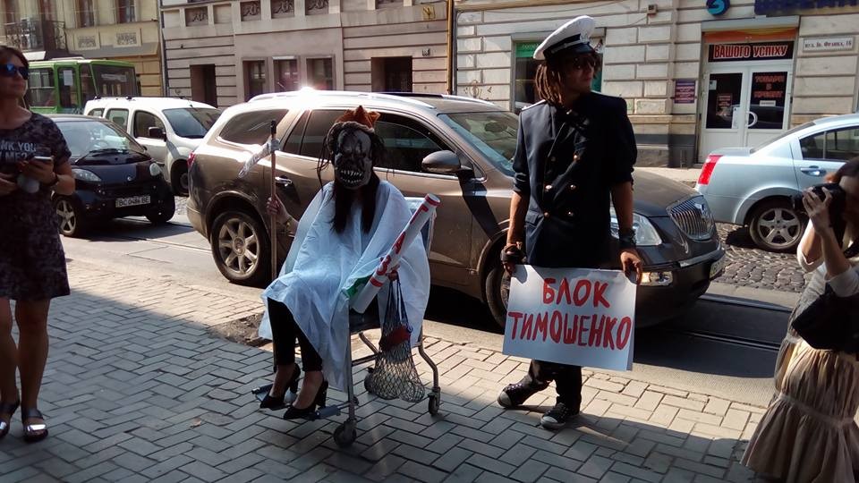 Політичні опоненти пікетували офіс Тимошенко, обласний осередок якої очолює екс-регіонал Михайло Цимбалюк, пише газета Експрес. Навпроти офісу цієї партії (вул. І. Франка) можна було побачити плакати з написами "Родіна, Юля, Єдіная Расєя, партія регіонів, інтер, кааліция".