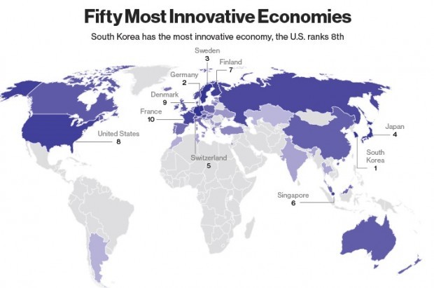 У першій п'ятірці рейтингу з інноваційними економіками крім Південної Кореї опинилися Німеччина, Швеція, Японія та Швейцарія, повідомляє ZN.UA з посиланням на Bloomberg.