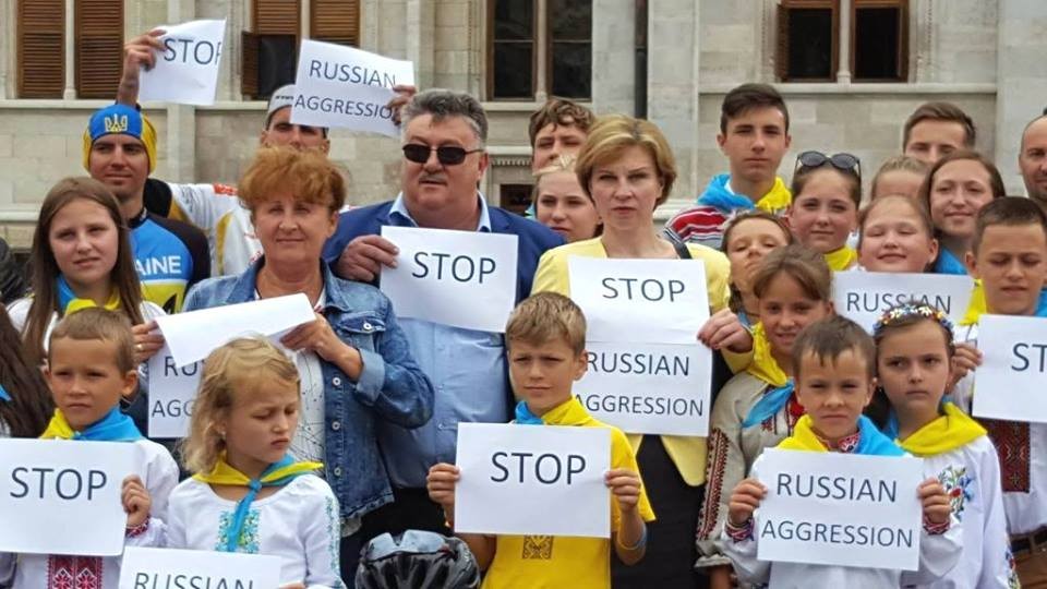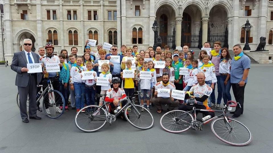 У зв'язку з черговою провокацією Кремля, спрямованою на виправдання окупації Криму та агресії проти України, а також безпідставними звинуваченнями на адресу України, які пролунали 10 серпня ц.р. з вуст вищого керівництва РФ, 11 серпня перед Державними Зборами Угорщини було проведено акцію Stop Russian Aggression.