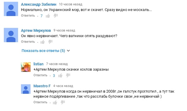 Интернет-пользователи тут же начали выдвигать догадки, почему он так себя вел. Кто-то решил, что одесский губернатор прыгает от радости, другие решили, что он сильно нервничает. Были также версии о психотропных препаратах, которые он мог употребить, а также о том, что прыжками Саакашвили демонстрирует, что он не москаль.