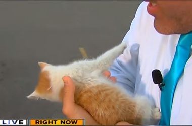 На одном из американских телеканалов произошел небольшой конфуз – маленький бездомный котенок сорвал прямое включение журналиста канала ABC 7 Нима Шаффа.
