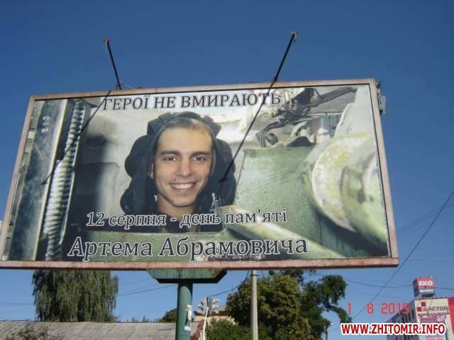 1 августа в Житомире возле Богунского райсовета появился билборд с фотографией 25-летнего Артема Абрамовича, который пропал 12 августа под Степановкой Донецкой области.