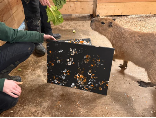 Картини намалювали пінгвіни, капібари, жирафи, лінивці та інші тварини.