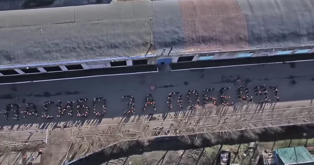 Видеоролик опубликовало в интернете управление ФСИН северной столицы. На кадрах видно, как 500 человек, одетых в темную форму, маршируют под песню «Катюша». Мужчины с черными и оранжевыми шариками в руках выстраиваются в слова «70 лет» и «Спасибо за победу» и выпускают воздушные шары цвета георгиевской ленточки в небо.