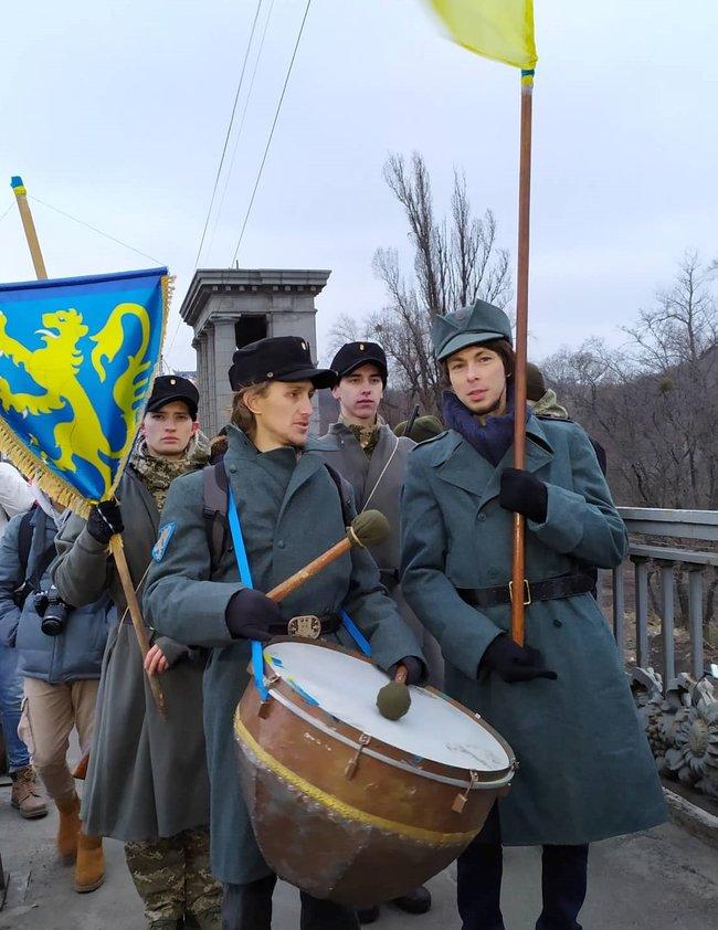 Участники акции собирались с двух сторон моста Патона. Около 8:00 колонны участников двинулись навстречу друг другу, что символизирует объединение Западно-Украинской и Украинской народной республик в 1919 году.