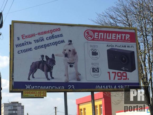 У будівельного супермаркету "Епіцентр" з креативом не складається. Це підтверджує і реклама екшн-камер. Креативщики "Епіцентру", не знайшли нічого кращого як повісити їх на собак, - повідомляє PRпортал.