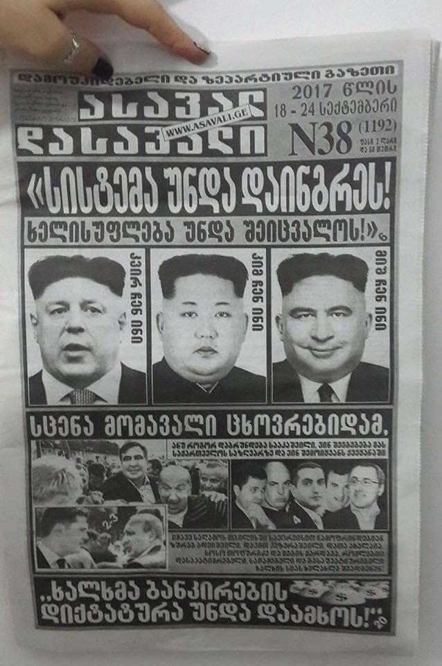 Як повідомляє PRпортал, він оприлюднив фото грузинської газети, де зобраденого діючого прем'єр-міністра Григорія Квірікашвілі, діючого диктатор КНДР Кім Чен Ина та "просто політика без кордонів Міхаеля Саакашвілі".