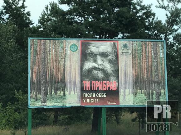"Ти прибрав після себе у лісі" - написано на борді. Також на рекламному щиті зображено дідуся, котрий, очевидно, і є Лісивиком