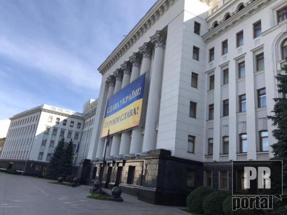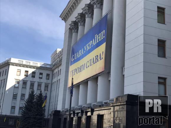 На будівлі Адміністрації Президента розмістили банер "Слава Укоаїні!"