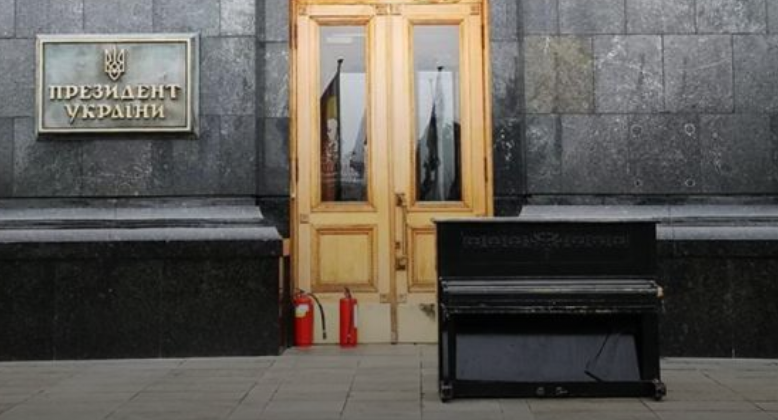 У четвер, 28 листопада, до центрального входу в Офіс президента України принесли фортепіано та два вогнегасники