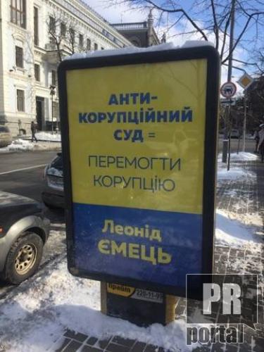 Народний депутат Леонід Ємець розмістив у Києві рекламу "Антикорупційний суд = перемогти корупцію".