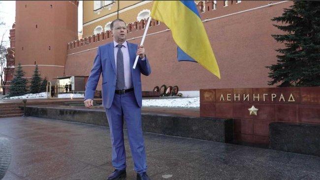 Россиянин с флагом Украины у стен Кремля требовал прекратить антиукраинскую истерию