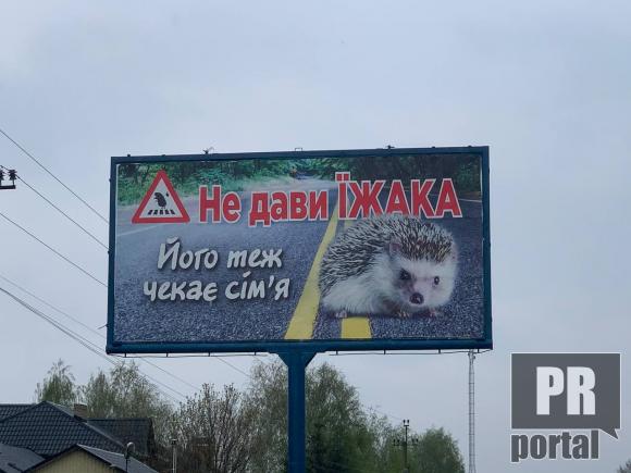 "Не дави їжака, його також чекає сім'я", - борд з таким слоганом PRпортал помітив на Осокорках у Києві
