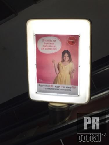 Тепер у київському метрополітені фотокор PRпорталу зафіксував сіті-лайт на якому уже зображено дівчину, котра відверто натякає: "Зі мною тобі захочеться зайнятися англійською!"
