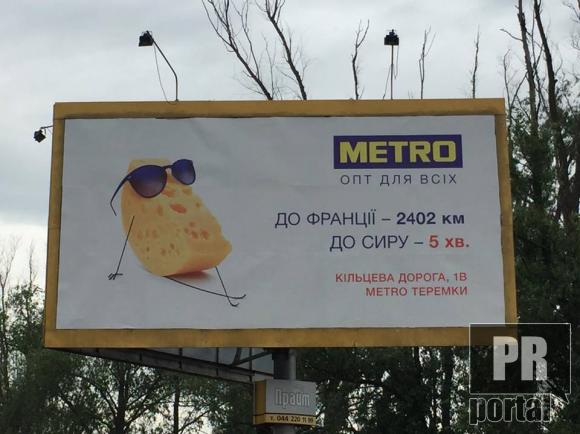 Для французького сиру номінації не знайшлося. Тому рекламщики вирішили нагадати, що до Франції 2402 кілометри, а до супермаркета, що на Окружній - 5 хвилин від цього борду