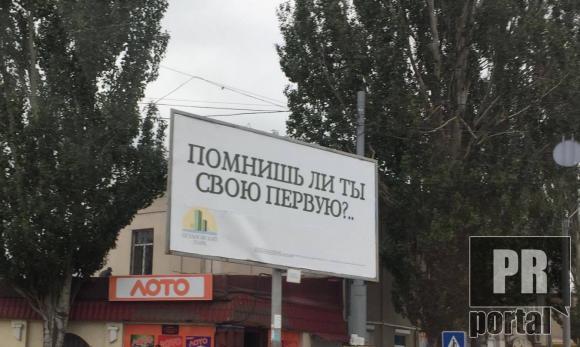 "Помнишь ли ты свою первую?..". Борд з таким слоганом фотокор PRпортала запечатлел в Одессе.