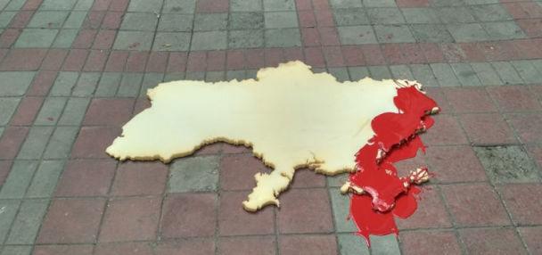 У Харкові активісти залили "кров'ю" карту України біля стін Генконсульства РФ