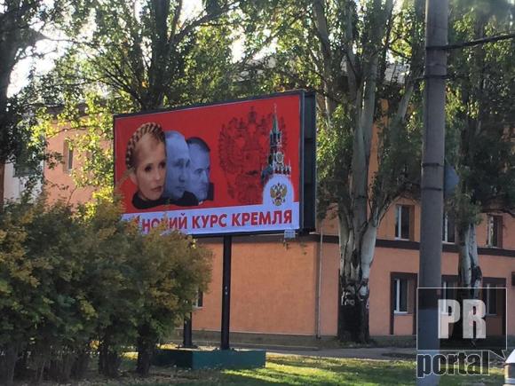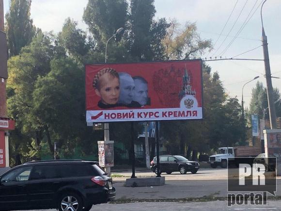 У Кривому розі з'явилися борди на яких Юлія Тимошенко зображена поряд з Віктором Медведчуком та Володимиром Путіним. Як повідомялє PRпортал фото у себе на фейсбук-сторінці опублікувала журналістка Софія Скиба. На рекламних щитах написано слоган: "новий курс Кремля"