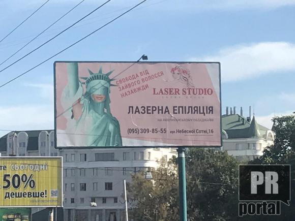 "Свободу від зайвого волосся назавжди" обіцяє з біллборда полтавська "Лазер студіо". Як повідомляє PRпортал ця студія пропонує лазерну епіляцію