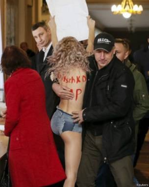 12. У Києві на дільницю, де голосував чинний мер Києва Віталій Кличко увірвалася дівчина, яка використовувала символіку FEMEN і навіть встигла оголитися. Згодом рух FEMEN заявив, що вона не є його учасницею.