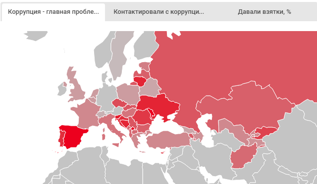 Интересно, что самая высокая лояльность к коррупции у жителей России и Украины. В этих странах готовы давать взятки, например, в сфере образования. В 2016 году коррумпировали работников сферы образования более трети россиян и украинцев.