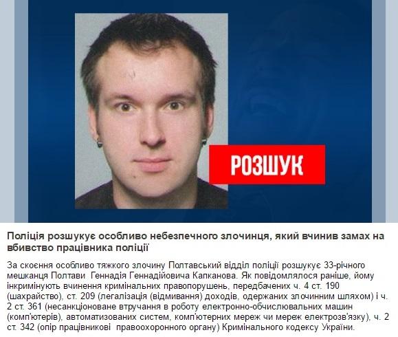 В ноябре 2016 Геннадий Капканов создатель киберсети «Avalanche», чья деятельность нанесла ущерба по всему миру на сотни миллионов долларов, был арестован в Полтаве. Несмотря на то, что он находился в международном розыске, он был практически сразу освобожден из-под стражи и скрылся. Он находился в бегах в течении 15 месяцев.