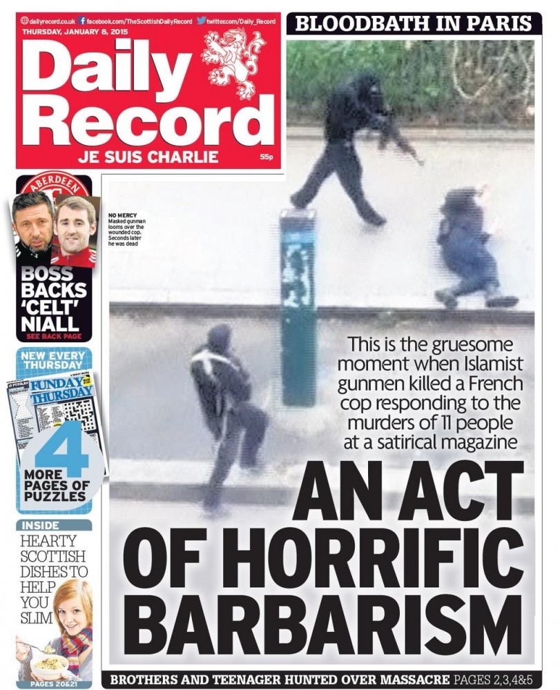 Произошедший вчера в Париже теракт, где жертвами стали 12 сотрудников редакции журнала Charlie Hebdo в Париже, занял центральные полосы мировых СМИ.