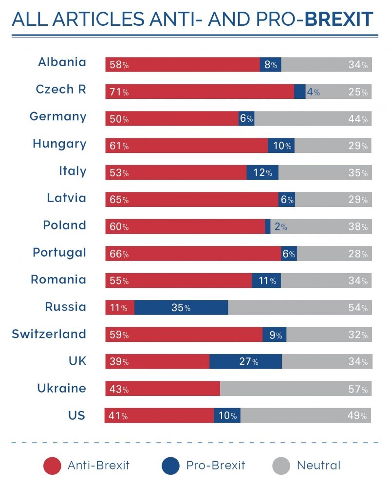 Большинство статей давало негативную (56%), или нейтральную (36%) оценку и прогнозы, как для самой Великобритании, так и для ЕС, в целом. Исключением стала Россия – но другого там никто и не ожидал. И европейские, и американские издания, независимо от политической направленности, осветили результат британского референдума с градацией эмоционального оттенка от «приглушенного удивления» до «разочарования», сообщают исследователи.