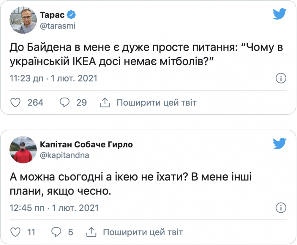 Відмітились коментатори також в Twitter, поєднавши відкриття IKEA та вислів з інтерв’ю шостого президента України Володимира Зеленського американському каналу НВО, яке миттєво розібрали на цитати і меми.