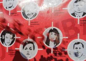 Двадцятьох чотирьох народних депутатів, які провалили голосування за Антикорупційне Бюро, закидали помідорами на Майдані Незалежності.