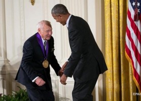 Мел Брукс вдав, що знімає штани з американського президента.