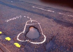 Цікавий спосіб боротьб з неідельним покриттям доріг винайшов анонімний художник Wanksy