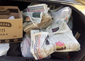 Троє українців намагалися перевезти тисячу газет "Новороссия" 2014 року видання.