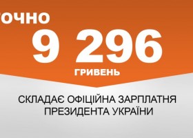 Офіційна зарплата президента України Петра Порошенка становить 9,296 тисяч гривень.