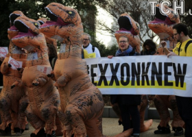 У США активісти у костюмах динозаврів та чудернацькому одязі влаштували акцію протесту проти призначення на пост державного секретаря Рекса Тіллерсона.