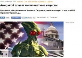 РЕН ТВ опублікував фейкове повідомлення про те, що прибульці з космосу допомагали Гітлеру, а також захопили владу в США. Таке повідомлення з’явилося на сайті телеканалу з посиланням на іранське агентство Fars News