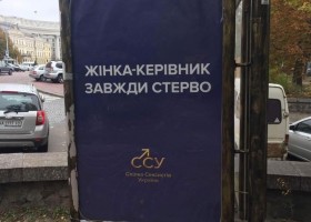 Сьогодні сексистські рекламні плакати уже були переклеїні стрічками з написами "стереотипи під наглядом".