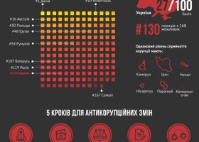 За год Украине удалось заработать лишь один дополнительный балл по результатам мирового Индекса восприятия коррупции CPI.