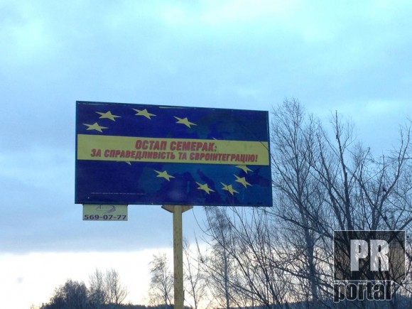 По понятным причинам, разместить свой «фейс» на билбордах Семерак не может, поэтому ограничивается «евросоюзной» подкладкой по лозунги