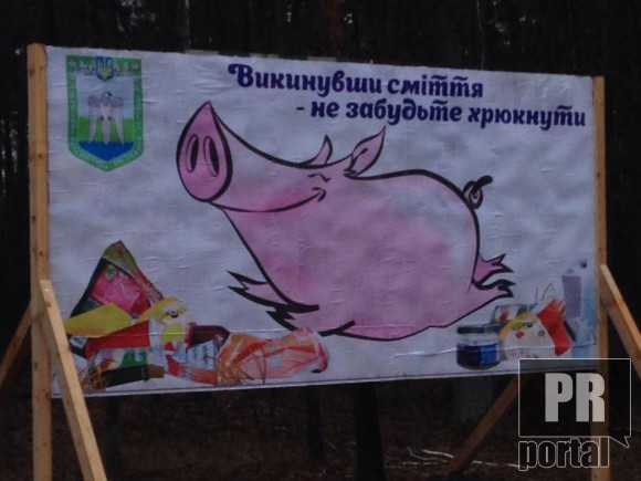 Борди нагадують тим, хто кинув сміття, щоб похрюкав: "Викинувши сміття - не забудьте хрюкнути" Рекламні конструкціі, з "поросячою" соціалкою, являють собою звичайні дерев`яні дошки "на ніжках".