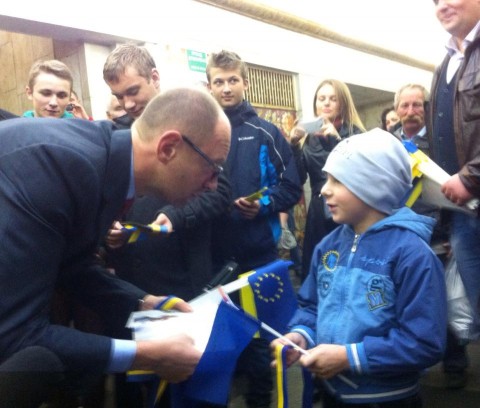 Яценюк та Луценко агітують в метро за ЄС!